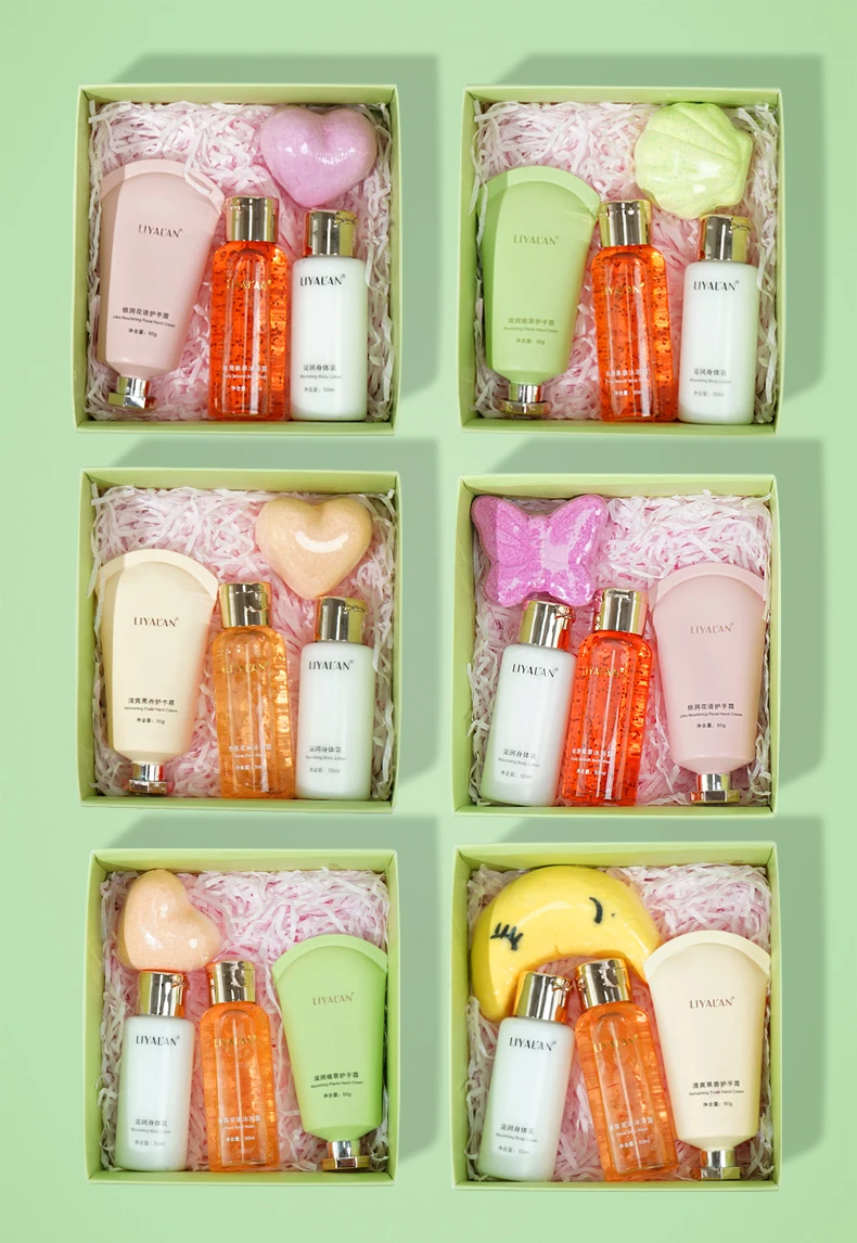 - Contain Body Lotion*1(fixed style), Body Wash*1(random style), Hand Cream*1(random style), Bath Bomb*1(random style).